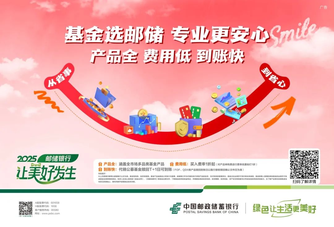 郵儲銀行基金代銷服務品質躍升,產品全、費用低、到賬快:涵蓋全市場多品類基金產品;買入費率低至1折起(對產品申購費進行費率優惠如打1折);代銷公募基金贖回T+1日可到賬(FOF、QDII類產品贖回到賬日以郵儲銀行接收贖回確認文件日為準),讓資金流轉更高效。