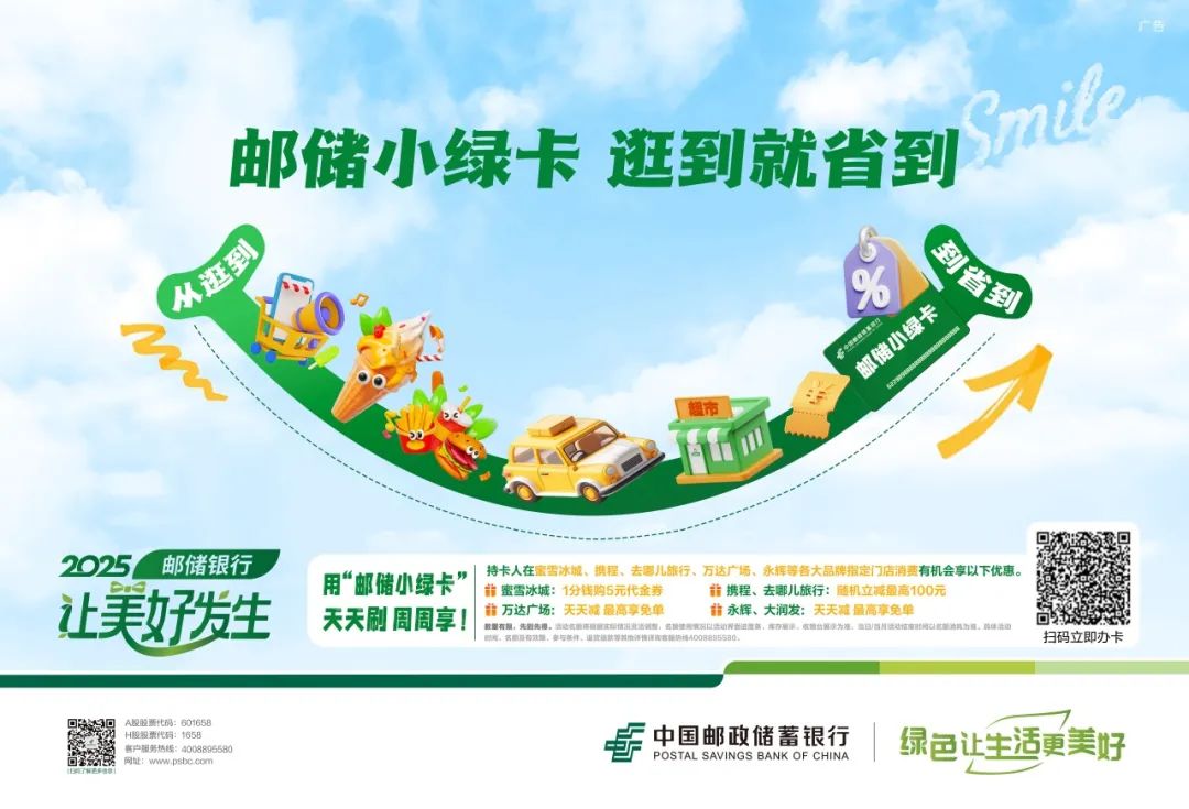 具體活動時間、參與條件、名額有效期及退貨退款規則等詳情,請咨詢郵儲信用卡客服熱線400-889-5580,或登錄郵儲信用卡APP/郵儲銀行手機銀行“超值優惠券”頁面查詢最新活動信息。快來刷郵儲小綠卡,暢享超值優惠吧!