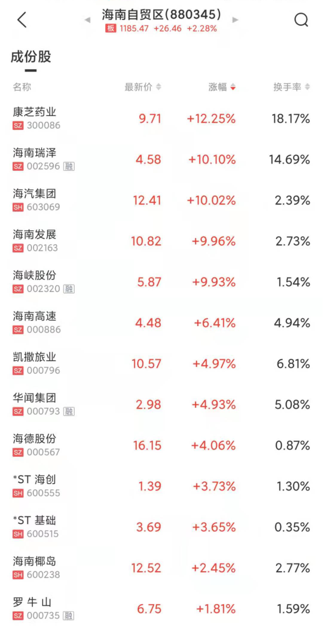 海南自貿區概念股異動拉升,海南瑞澤、海汽集團、海南發展漲停,海南椰島等多股跟漲。