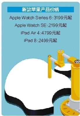另外,搭載A12芯片的新款iPad 8也同步發布,它支持 Apple Pencil 和智能鍵盤,并滿載 iPadOS 14 眾多新功能,售價2499元起。(記者 溫婧)