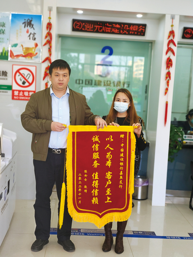 2月4日上午,客戶家屬來中行咸寧分行送來錦旗,錦旗上書寫“伸大愛援助之手,救老人危難之時”十四個大字熠熠生輝,高度贊揚...