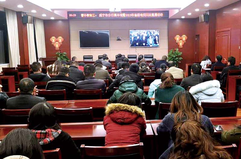 咸寧網訊(通訊員 王蜜蜜)近日,郵儲銀行咸寧市分行組織全體干部職工集中觀看了湖北電視臺《堅決向形式主義官僚主義亮劍——2019湖北電視問政》第二場直播,查找自身不足,改進工作作風。