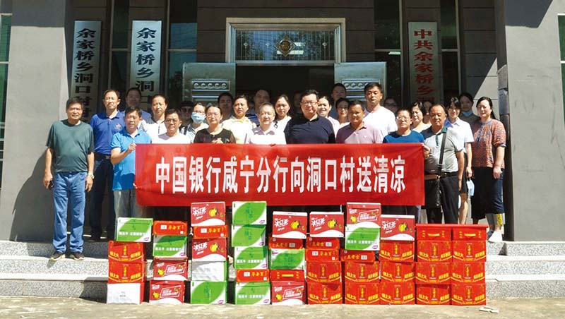 咸寧網訊(通訊員 陳宏睿) 8月15日,中國銀行咸寧分行一行40余人到赤壁市余家橋鄉洞口村開展主題黨日共建活動,并為他們送去防暑降溫慰問物資。