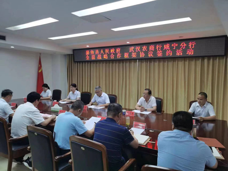 8月9日,武漢農商行咸寧分行與嘉魚縣人民政府戰略合作協議簽約儀式在嘉魚縣政府三樓會議室舉行。協議約定武漢農商行咸寧分行將向嘉魚縣政府提供總額達30億元的綜合授信,在信貸規模、資源配置上全力支持嘉魚縣特色農業、新工業、生態文化旅游業等支柱產業;基礎設施建設、重點建設項目;招商引資項目、中小微企業及涉農客戶的發展壯大,為嘉魚縣經濟高質量發展提供強有力的金融支持。