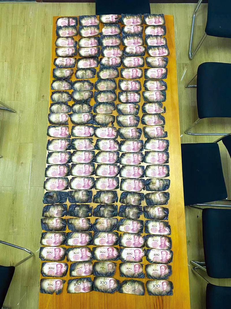 原來,因家中不幸失火,胡先生家存放的1萬多元現(xiàn)金被燒,撲救中又被水淋濕,一沓現(xiàn)金已經(jīng)焦黑成一團無法分辨。胡先生希望中行能幫忙清理兌換,盡可能挽回損失。