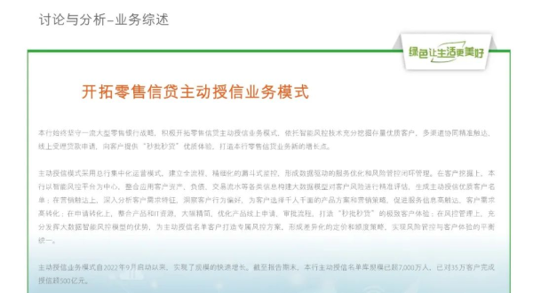 在零售風控領域,該行研發主動授信模式,深度挖掘優質存量客戶,提供秒批秒貸服務,實現風險管控與客戶體驗的平衡統一;推進零售信貸自動化審批,降低分支機構信貸審批人員工作量一半以上,穩步提升客戶質量。