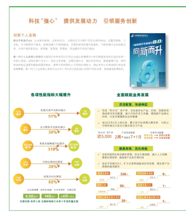 2022年,郵儲銀行新一代個人業務核心系統全面上線,從IT基礎設施、系統軟件、企業級技術平臺、應用軟件全層面全體系,從業務創新、系統研發、生產運營全過程全周期,實現關鍵技術自主可控,同時也是大型銀行中率先同時采用企業級業務建模和分布式微服務架構打造的全新一代核心系統。