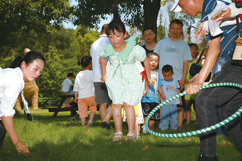 隨后孩子們在爸爸媽媽的陪伴下共同參與當天的親子游戲環節,“小兔跳圈”“魔幻方池”等趣味性十足的游戲項目讓孩子們不僅領略到游戲帶來的快樂,更體驗到了相互協作的團隊精神,感受到了父母陪伴的幸福。