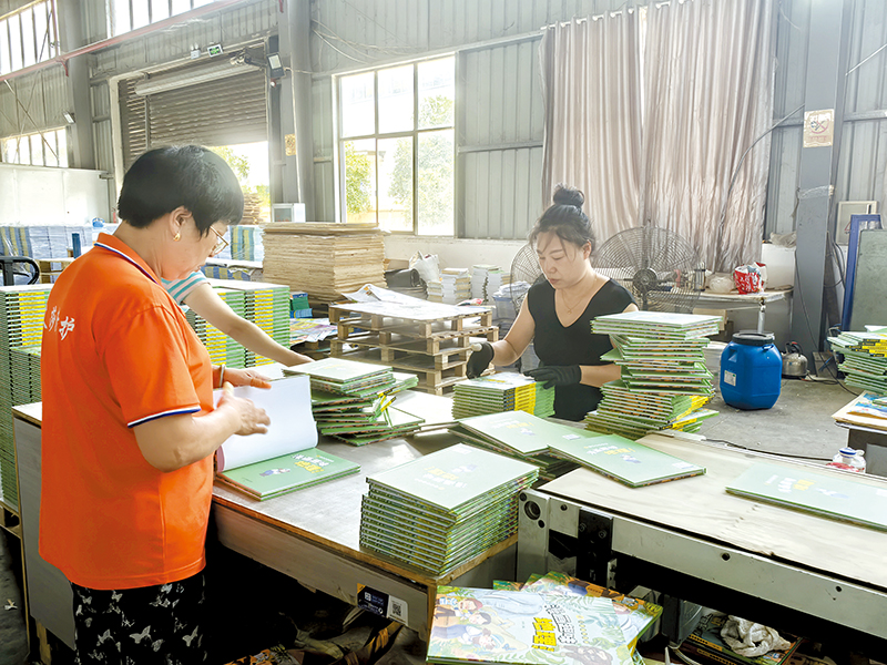 “訂單主要來自出版社,公司長期與武漢長江出版社,長江少兒出版社、二十一世紀等,保持親密無間的合作關系?!标悙燮几嬖V記者,現在公司每天能生產精裝圖書4萬冊。