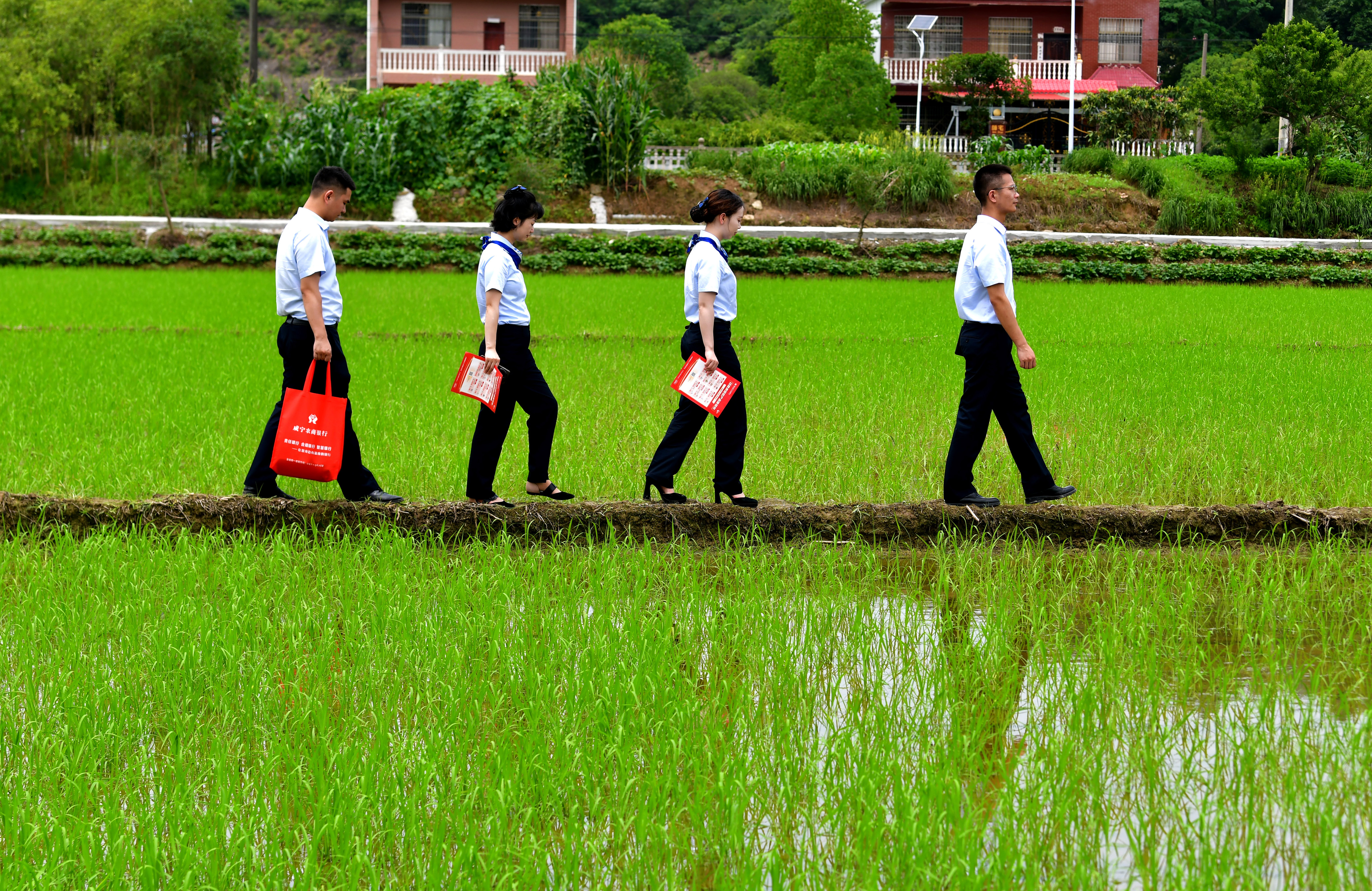 田間地頭,是服務(wù)最鮮活的現(xiàn)場(chǎng)。春耕時(shí)節(jié),嘉魚農(nóng)商行的 “挎包小分隊(duì)” 踩著晨露出發(fā),深入潘家灣鎮(zhèn)的蔬菜基地,為種植大戶現(xiàn)場(chǎng)辦理“嘉農(nóng)貸”。“以前貸款要跑好幾趟銀行,現(xiàn)在客戶經(jīng)理上門收資料、現(xiàn)場(chǎng)審批,當(dāng)天就能到賬,一點(diǎn)不耽誤農(nóng)時(shí)。” 拿到 30 萬元貸款的李大叔,看著綠油油的蔬菜大棚,滿臉笑意。在通山縣的枇杷園里,通山農(nóng)商行的客戶經(jīng)理頂著烈日走訪,為擴(kuò)大種植規(guī)模的農(nóng)戶現(xiàn)場(chǎng)測(cè)算授信額度,用移動(dòng)終端完成貸款申請(qǐng)。崇陽農(nóng)商行則組建 “金融村官” 隊(duì)伍,每周固定兩天駐村服務(wù),在雷竹種植基地為農(nóng)戶講解信貸政策,現(xiàn)場(chǎng)解決資金周轉(zhuǎn)難題,讓金融活水精準(zhǔn)滴灌鄉(xiāng)村沃土。