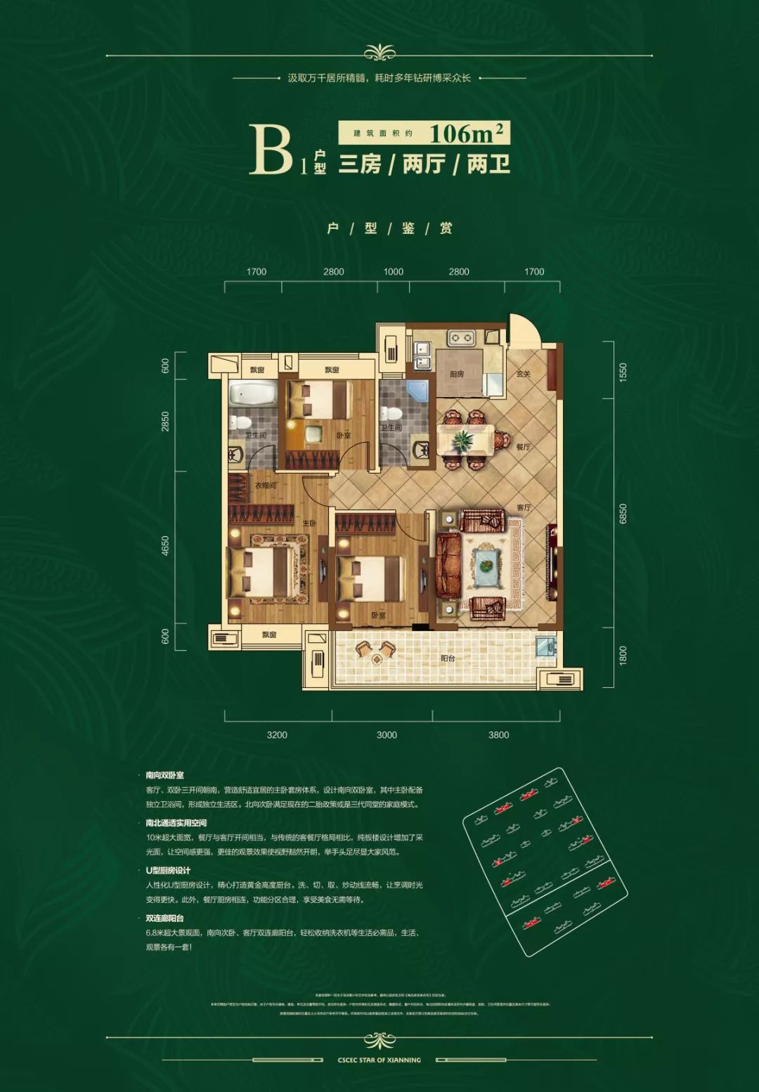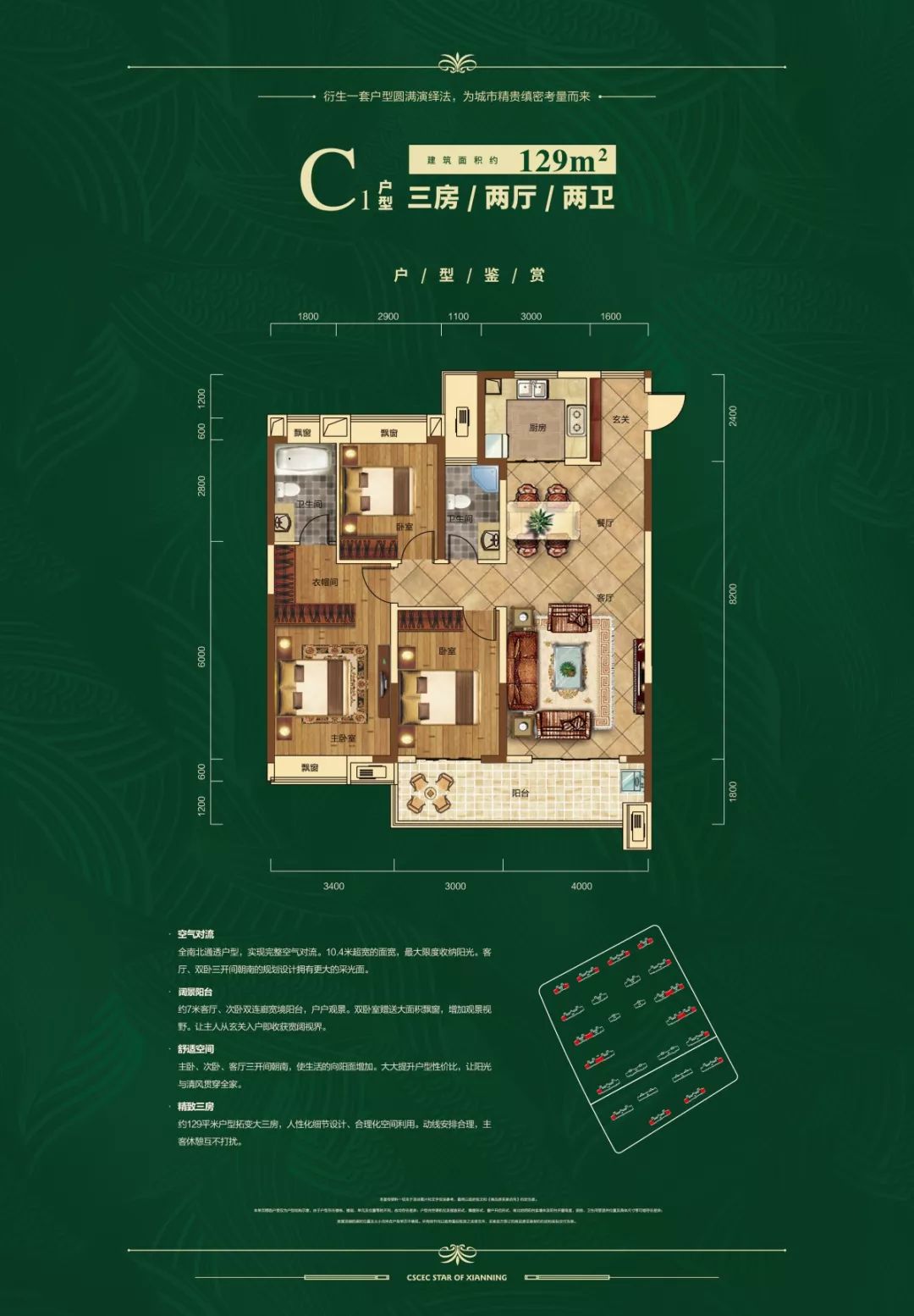 建面約106㎡、129㎡三房兩廳兩衛(wèi)戶型