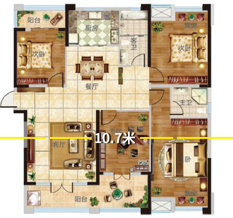 眾所周知,面寬越大,犧牲的總建面越多,這對開發商是不小的損失。市面上同面積段的四居室常規面寬尺寸多為約10~11米。