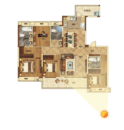 光是建筑的第四度空間,好的采光是衡量住宅的重要標準。一個開發商最基本的自我修養,就是讀懂購房者的“朝南情結”。我們評價一個戶型好不好,就是比拼誰占有更多南向資源 。