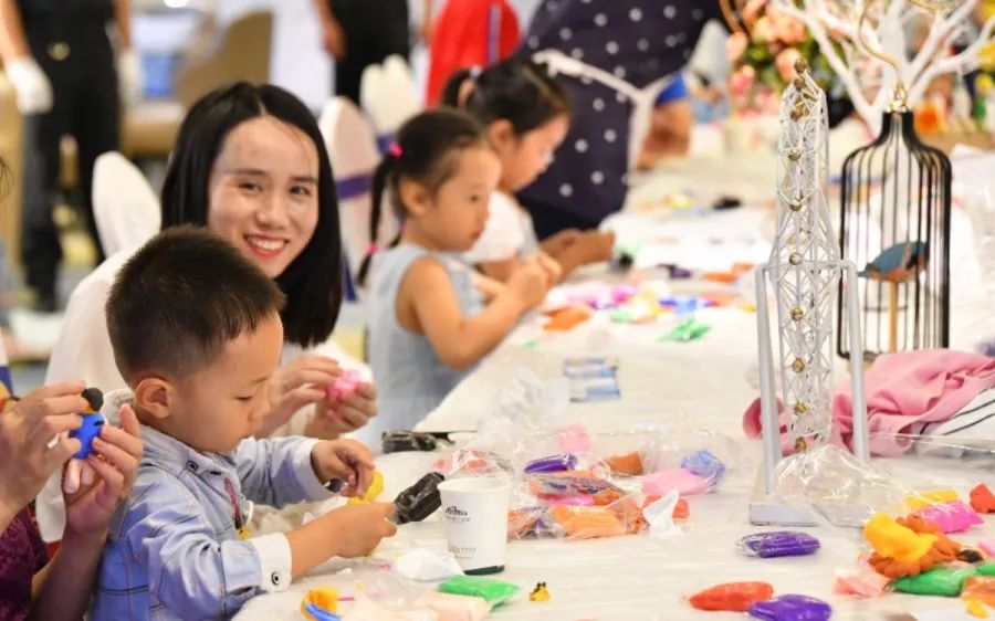 小朋友們在軟陶師和家長的指導下