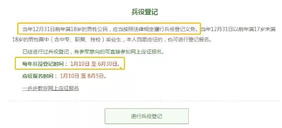 2019年兵役登記時間:2019年1月10日——6月30日。