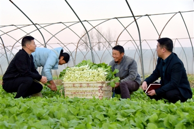 圖為該市赤馬港街道紀工委干部深入營里社區走訪蔬菜種植承包戶,了解相關問題線索。