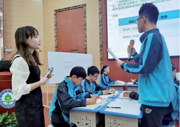 去年11月,王穎參與了由咸寧高新實驗外國語學校舉辦的“基于新課改 融合信息技術的新型教與學模式”優質課競賽活動。她立足于課本對杜甫的群詩進行了群文設計,引導學生在語文實踐活動中,通過閱讀、比較、推斷、討論、表達等方式,讓學生感受文學語言和形象的獨特魅力,培養學生的思維能力。