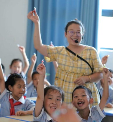 雖然有近十年教齡了,可華彬在教學上不見半點松懈,課前做好備課,課堂氣氛活躍。因為一年級的孩子活潑好動,思維跳躍,華彬在教學時總是準備一些小游戲、小故事吸引孩子們。一次課上,華彬結合課文內容,帶著孩子們跳起舞來,孩子們開心極了,邊讀課文邊做動作,沒一會兒,大多數孩子就能記住課文內容。這種寓教于樂的方式讓孩子們更喜歡華彬,課下總會有孩子抱著她說:“老師,剛才的課真是太有趣了!”