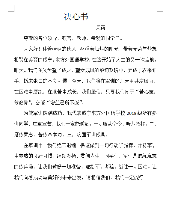 2、 希望同學們要做好思想準備,把自己當成一名真正的軍人,按軍人的標準要求自己,使自己真正得到鍛煉。