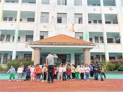 “1、2、3,大家跟著我一起動(dòng)起來……”走近通山縣大畈鎮(zhèn)中心幼兒園,遠(yuǎn)遠(yuǎn)地就能聽到一片歡聲笑語(yǔ),隨著口號(hào)聲,一位身材健美的男教師正帶著幼兒園小朋友進(jìn)行戶外運(yùn)動(dòng)。