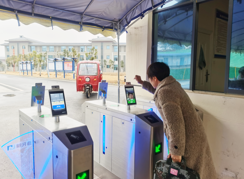 只見楊文麗老師端正站立在“人臉識別機”面前,機器顯示屏上立即跳出老師的名字、班級號和體溫情況,門禁通道呈現(xiàn)通行狀態(tài),老師順利進入校園,同時系統(tǒng)內(nèi)也錄入老師進校園的時間,實現(xiàn)考勤打卡。