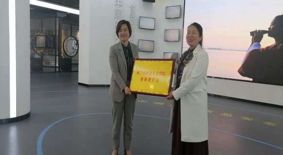 咸寧網訊(記者陳凱?通訊員?曾紅梅)4月24日下午,坐落在咸寧市高新區光谷南·科技城A4棟的中國·咸寧食品安全科技展覽館舉行了咸寧市社會主義學院首個“現場教學點”的授牌儀式。中共咸寧市委黨校(市行政學院、市社會主義學院)2021年春季黨外干部培訓班一行近四十人在館內進行現場教學體驗課。咸寧市社會主義學院專職副院長謝亞芳授牌并致詞,參加的嘉賓還有中共咸寧市委黨校教務處主任董芳。現場活動由中共咸寧市委黨校教師張典主持。