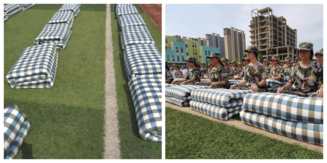 “出門看隊伍,進門看內務”內務整理是軍訓的必修課之一?!氨蛔尤织B,七分修”鋪平、壓實、翻折、扣角、捏線……最終,一個個整齊的“豆腐塊”呈現在訓練場上,形成一道亮麗的風景線。