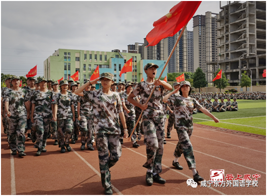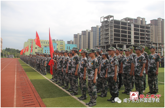 ??“自信、自強,拼搏創新,發奮圖強!”9月7日,咸寧東方外國語學校紅旗獵獵,軍姿颯爽,該校一千多名高一新生身著迷彩服,整齊排列在學校操場,宛如鋼鐵戰士,以飽滿的熱情、高昂的斗志、整齊的步伐、嘹亮的口號接受學校領導、訓練教官的軍訓總結檢閱。