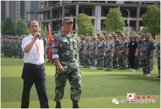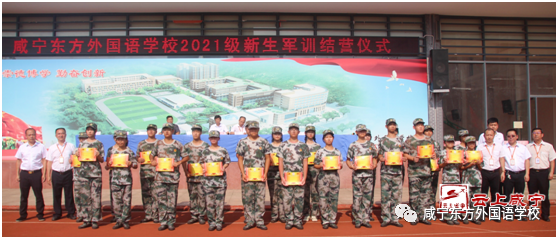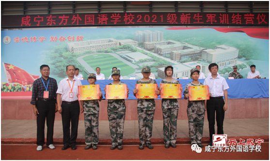 軍訓總結大會上,咸寧東方外國語學校總校長韓冀、執行校長陳大恒、黨支部書記周家華、德育副校長羅會明、教學副校長劉勝、辦公室主任陳衛國等為軍訓優秀連隊和個人頒獎。