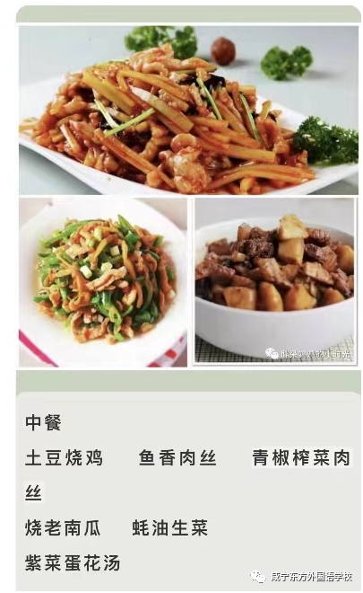 “我們的食堂餐具每天三餐消毒,蔬菜是從嘉魚蔬菜基地采購,魚肉類全部在政府認定的放心店采購。學校每周開展食材安全、衛生安全大檢查,確保師生吃得安全放心。學生分學部錯峰就餐。單人單桌間隔一米用餐,初中部學生吃完,高中部學生吃。”咸寧東方外國語學校食堂部負責人楊經理介紹,學校食堂秉承“把學生當親人”的理念,真誠熱情為學生服務,為此食堂員工每周開展全員學習培訓,提升服務質量,根據學生的喜好科學營養搭配制定每天菜譜,確保孩子們吃飽吃好。