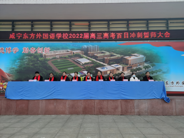 咸寧東方外國語學校高三年級主任王重陽首先表彰各科優秀學生,激勵同學們再接再厲,奮力拼搏。他說100天很短,在生命的長河中就如同滄海一粟;一百天,又很長,長到足以改變我們的一生。希望同學們堅定信心,勇往直前,用拼搏的姿態度過每一天。