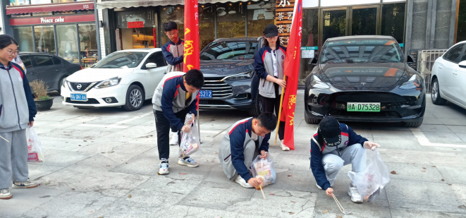 早上8時(shí)許,簡(jiǎn)短的啟動(dòng)儀式之后,高一年級(jí)1000余名同學(xué),在老師和家長(zhǎng)志愿者的帶領(lǐng)下,分班奔赴校園周邊路段。咸寧大道兩側(cè)、銀泉大道、人民廣場(chǎng)等路段和場(chǎng)所,同學(xué)們一手拎垃圾袋,一手拿筷子,像模像樣,順手撿起人行道、街邊商鋪、綠化帶的紙屑、煙頭等垃圾,所到之處,變干凈了,也更有顏值了。過往的居民對(duì)師生們的行動(dòng)紛紛豎起了大拇指。面對(duì)街邊商鋪招牌、宣傳標(biāo)語、道路指示牌等的語言文字規(guī)范使用進(jìn)行實(shí)地觀察,對(duì)不規(guī)范用字現(xiàn)象、翻譯及時(shí)登記。