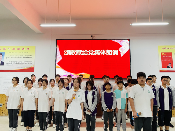 活動中初中部52名參賽選手,以充沛飽滿的感情、鏗鏘有力的聲聲,聲情并茂地朗誦了《慶祝中國共產黨成立100周年獻詞》、《祖國,我親愛的祖國》、《沁園春·雪》一首首傳承久遠的紅色經典美文,讓在場的師生再次回顧了黨的崢嶸歲月,品味了保家衛國的革命氣概,領略了紅色精神、感受了紅色魅力,引發的現場陣陣掌聲。