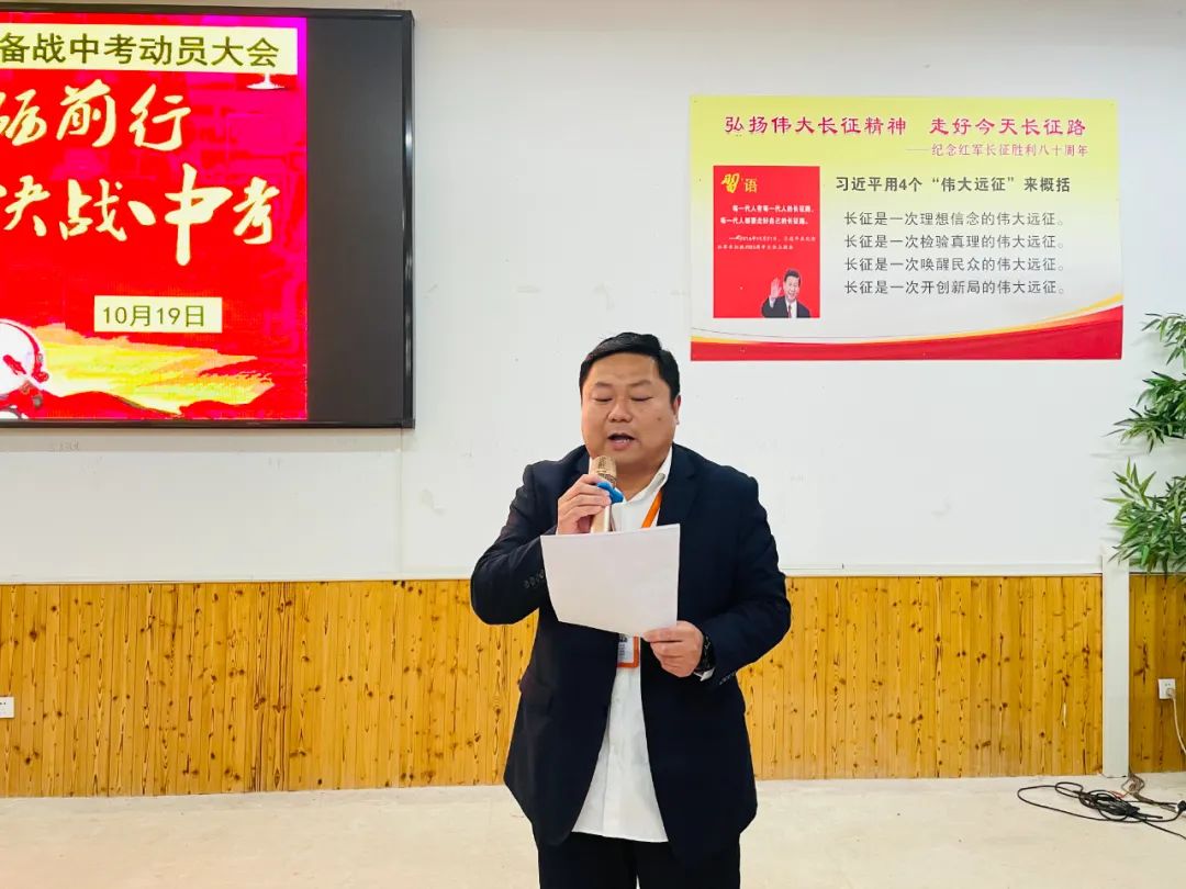 佘亞橋?qū)θw學(xué)生提出了三點(diǎn)希望:一、希望同學(xué)們樹立信念,志存高遠(yuǎn);二、希望同學(xué)們學(xué)會堅(jiān)持,鍥而不舍;三、希望同學(xué)們有效學(xué)習(xí),超越自我。對初三年級組和老師們提出三點(diǎn)要求:一是要符合實(shí)際,制定復(fù)習(xí)備考計(jì)劃;二是要團(tuán)結(jié)協(xié)作,牢固樹立質(zhì)量意識;三是要家校聯(lián)系,關(guān)注學(xué)生身心健康。他勉勵全體師生從今天起、從現(xiàn)在起,以百分之百的精力投入到教與學(xué)的過程中去,以前所未有的毅力投入到?jīng)Q戰(zhàn)中考中去,明年的中考,我們一定會取得更大的成功!
