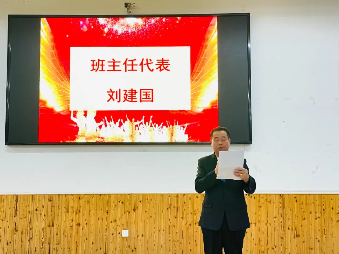 班主任代表劉建國提出五點(diǎn)要求:1.要確立奮斗目標(biāo);2.樹立必勝的信心;3.樹立積極端正的態(tài)度;4.培養(yǎng)積極端正的態(tài)度;5.以科學(xué)的方法為指導(dǎo)。
