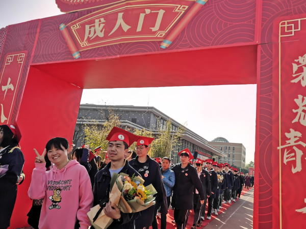 成人禮現場,家長為自己的孩子鄭重戴上“成人帽”、并互相“贈禮”、步入“成人門”、跨入“凱旋門”,宣告自己長大成人并為之努力奮斗。十八響禮炮在空中“開花”,鼓勵學子們為了理想大步前行。