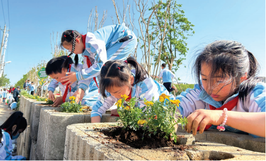 勞動開始之前,老師們悉心普及種花養花常識,并準備好了小鏟等勞動工具。在接受到老師分配的任務后,同學們就投入到熱火朝天的活動中去。有的學生拿起鏟子,松土、移植、刨坑;有的學生三五成群,清理花壇里的雜草、垃圾;還有的拿著水壺小心翼翼地給花苗“喝水”……孩子們體驗著勞動的歡樂,收獲著付出的辛勞與幸福。孩子們忙碌的身影和勞動的歡聲笑語,在明媚的春光中展現出一幅生機勃勃的畫面。