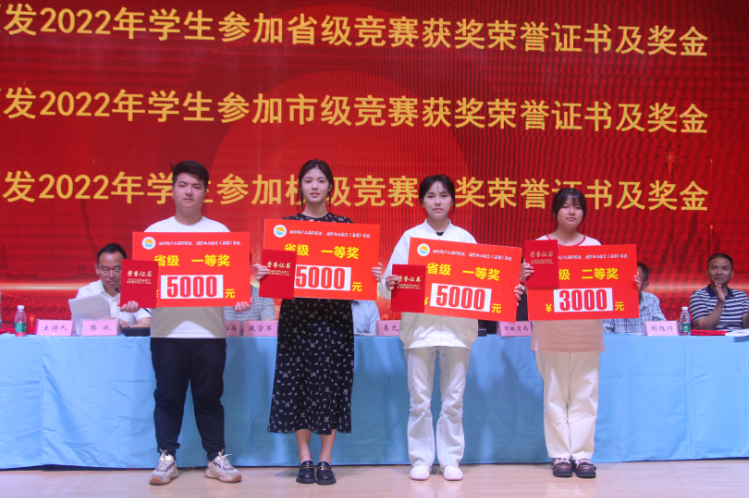在啟動儀式上,學校與4家企業進行合作簽約和授牌。咸寧市安擇動物醫院寵物醫療與護理專業校企合作產教融合簽約并授牌;香港大風車集團公司學前教育專業校企合作產教融合簽約并授牌;途虎養車公司校企合作產教融合簽約并授牌;咸安區中醫院校企合作產教融合簽約并授牌。隨后,學校為2022年度榮獲國家、省級、市級及校級技能競賽獲獎的師生頒發競賽獲獎榮譽證書及獎金。