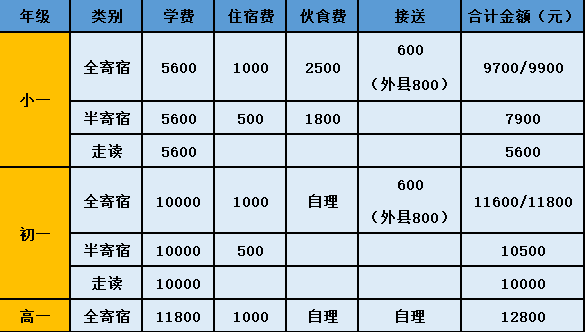 二、各年級插班生學雜費與本學段新生相同標準。(見上表)
