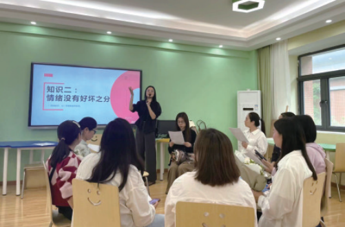 在認識情緒環節,老師們了解到情緒是一種能量,沒有好壞之分。在覺察情緒這一環節,老師們領悟到要做真實的自己,情緒需要合理的釋放和表達,被卡在低能量情緒里會引起身體的不適。在開心曼陀羅環節,一位老師傾訴近期發生的影響情緒和能量的事件,其他老師組成能量補給曼陀羅,用高能量自動卸載低能量達到療愈的效果。