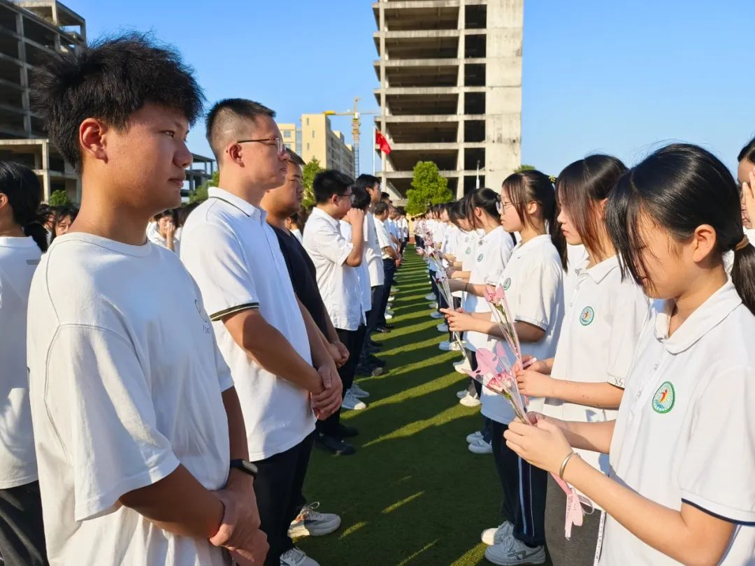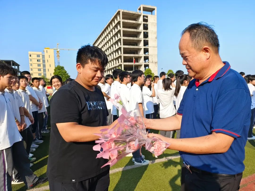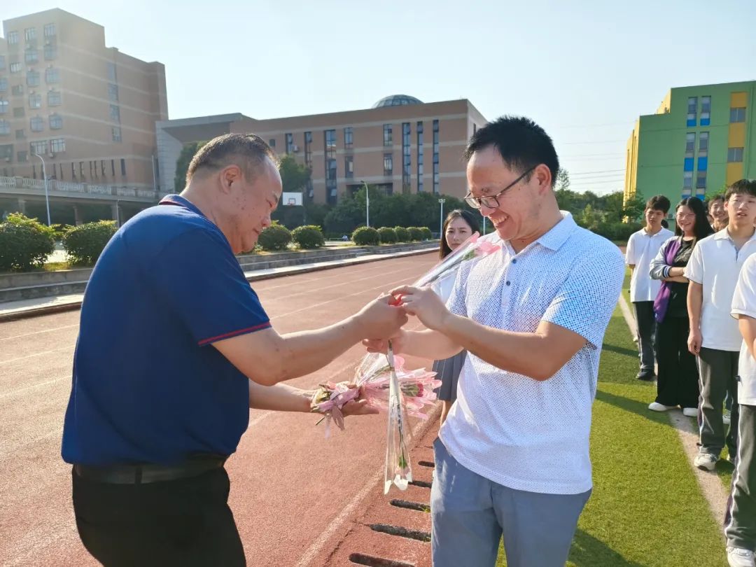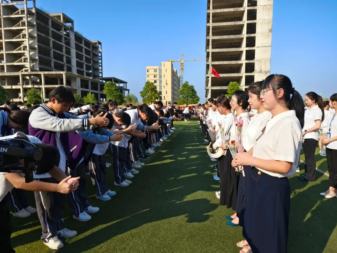 學生代表向全體教師獻花。在教師代表的引領下,全體學生向老師們行“三鞠躬禮”:一鞠躬,恩師教誨記心中;再鞠躬,知行守禮節如松;三鞠躬,勤奮求學志氣宏。