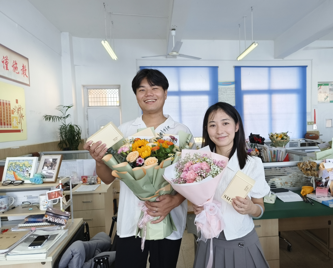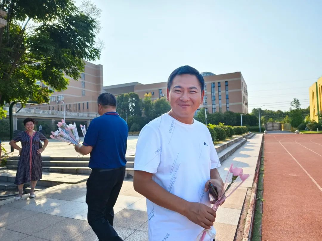 “收到學生的祝福和學校的關愛,我很高興。今后,我會像這株向日葵一樣向陽而生,將青春奉獻給祖國的教育事業。”教師萬方明手捧著向日葵花束說。