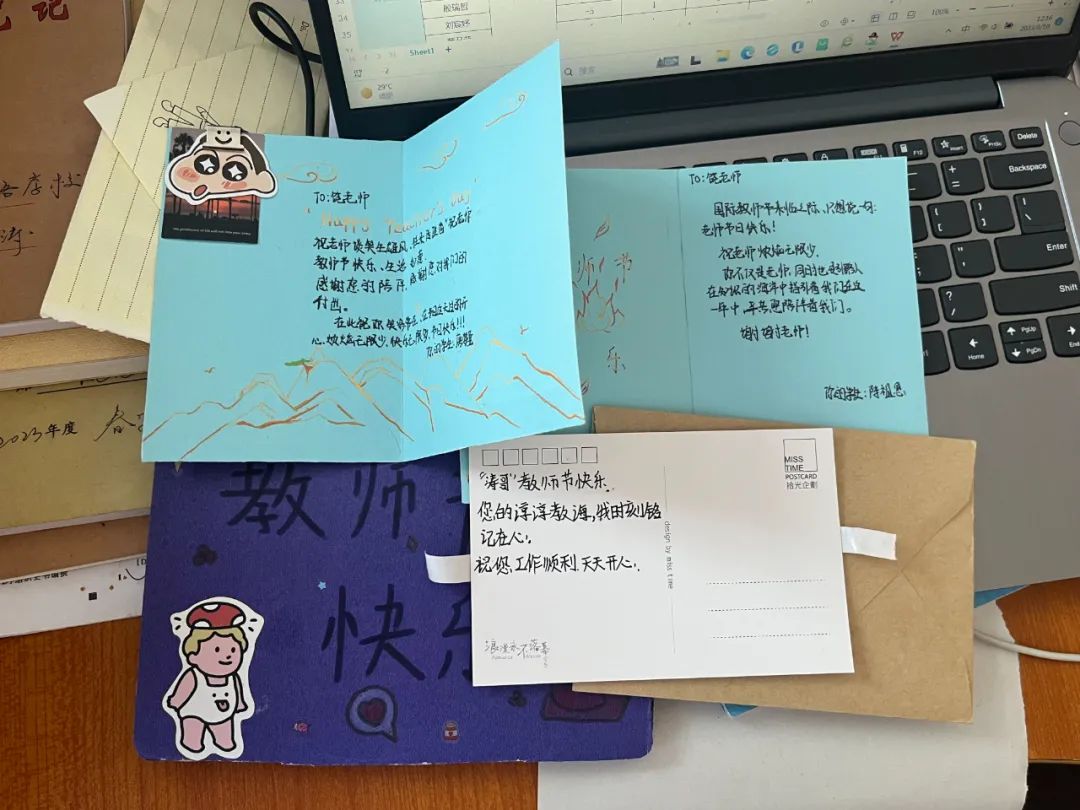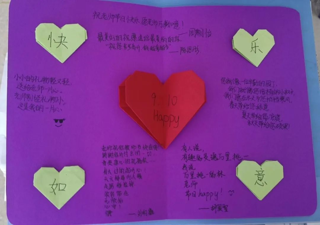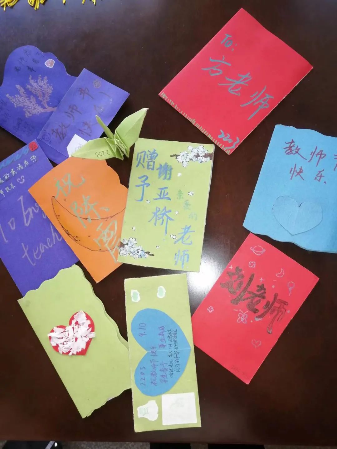 “老師,教師節快樂,您辛苦了!”在教師節來臨之際,學生紛紛給老師們送手工作品、賀卡、鮮花和繪制黑板報,表達對老師的感謝。除此之外,同學們還通過錄制祝福視頻來表達他們對老師的感激之情。