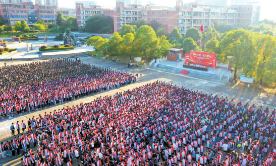 近日,鄂南高中全體師生齊聚升旗廣場舉行莊嚴的升旗儀式,并為獲得2023年世界中學生跆拳道錦標賽冠軍、2023年全國中學生領導力大賽等獎勵的學生頒獎。