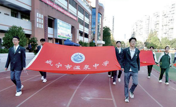 同學們青春飛揚,創意無限,把簡短的入場儀式做成了一篇篇錦繡文章。雖然都是統一著校服,但口號的精選、隊列的變化設計,每個年級都競相展示獨特的形象。初三的學子們還將中考必勝的信念融進方隊展演中,一條條橫幅、一句句口號,詮釋著青春的夢想,贏得現場觀眾陣陣熱烈的掌聲。