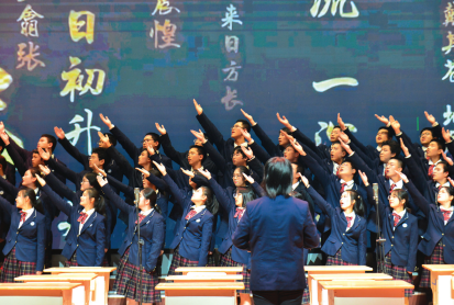 《少年中國說》的合唱,動作整齊劃一,聲音渾厚響徹舞臺,詩言志歌詠言,氣勢磅礴的演出展示了青年學生胸懷天下的豪情;高二年級的優秀課桌舞表演,模擬教室學習的情景,以書本為道具,靈動的表演,展現了學生們朝氣蓬勃,奮發向上的精神面貌。