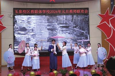 咸寧網訊(記者 熊大平 通訊員 吳學梅)歌為校園添春色,舞向龍年報好音。2023年12月29日,咸寧實驗外國語學校玉泉校區“同心共奮進,筑夢新征程”教聯體學校元旦教師聯歡會,在玉泉校區報告廳舉行。參加聯歡會的有咸安區教育局、溫泉教育總支相關同志以及教聯體學校柏墩中心小學,鳴泉小學、石城小學的老師。