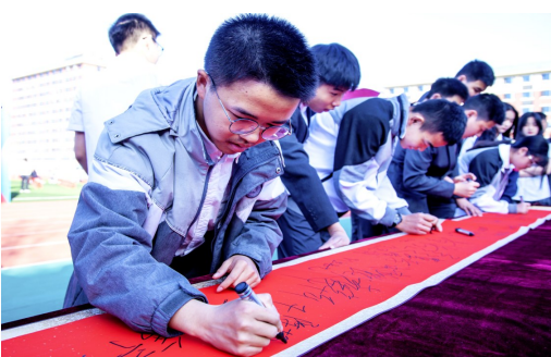 同學(xué)們紛紛表示,要以“黃沙百戰(zhàn)穿金甲,不破樓蘭終不還”的決心沖刺中考,為自己的三年拼搏交上滿意的答卷。