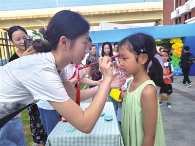 啟蒙養正,明理樂學。完成報名程序后,樂學樓的入學打卡拍照點,吸引了眾多新生留影。