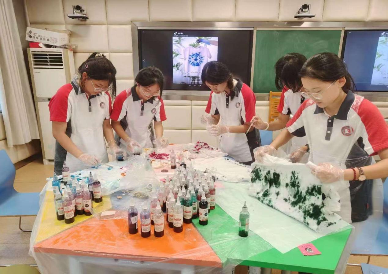 學校還積極發揮心理社團--心熠社的力量,緊扣美育主旨,實施美育浸潤行動。今年陸續已開展掐絲琺瑯畫、手繪星球小夜燈、一起來扎染三場活動,學生們參與的積極性高漲。